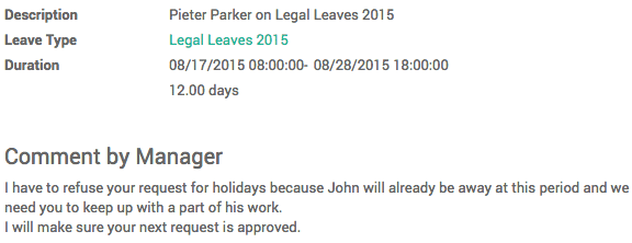 Permite a los empleados registrar sus solicitudes de vacaciones y recibe notificaciones por correo electrónico por cada nueva solicitud. Opta por aprobarlas o rechazarlas, y agrega una nota a su rechazo para proporcionar una explicación a tus empleados.